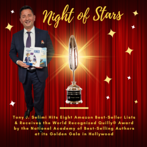 Tony J Selimi receiving the World Recognized Quilly® Award for hitting eight Amazon Best Seller lists for The Unfakeable Code®